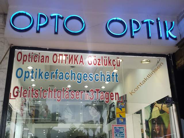 Ehemaliger Teppichverkäufer Erol bringt Brillen an den Mann. Spricht perfekt deutsch, läßt euch nicht zu Wort kommen und ist viel zu teuer. Verschliffene Gläser mit UHU ins Gestell geklebt damit sie nicht herausfallen. Achsabstand bestimmen gehört nicht dazu, also Pi mal Daumen , es gibt noch 2 weitere Optiker in Kemer, da seid ihr besser beraten und liegt mindestens 200 € unter Opto Optik...Dort stimmt der Service