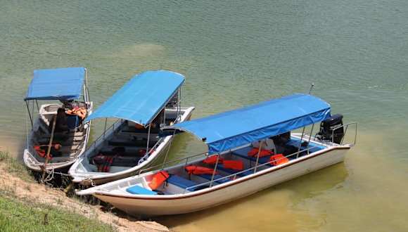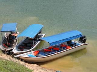 Wir haben bei unserem Bootsausflug ab Belum Rainforest Resort auch ein Orang Asli Dorf besucht. Orang Asli werden die Ureinwohner von Malaysia genannt. Im Nationalpark Belum Temengor sollen angeblich nur noch ca. 1400 Ureinwohner leben. Die Orang Asli leben in einfachen Hütten und sind sehr arm. Anämie und Mangelernährung sind immer noch weit verbreitet. Die Armutsrate unter den Orang Asli liegt laut unseres Reiseleiters bei etwa 76,00 Prozent. Wir haben daher vorher für die Bewohner des Dorfes gesammelt und unser Reiseleiter hat in einem Supermarkt in einer malaysischen Kleinstadt für die Dorfbewohner bereits Grundnahrungsmittel z.B. Reis für die Dorfbewohner gekauft. Die Grundnahrungsmittel wurden den anwesenden Frauen übergeben und einige Süßigkeiten erhielten die Kinder. Meines Wissens lebten nur 8 Familien in diesem Dorf. Wir sahen nur einen älteren und einen jüngeren Mann. Der jüngere Mann verkaufte selbstgefertigte Halsketten. Auffällig waren die vielen spielenden kleinen Kinder mit ihren Müttern im Zentrum des Dorfes. Einem 12-jährigen Mädchen schenkte ich Schulsachen, die ich bereits aus Deutschland mitgebracht hatte. Tochter und Mutter bedankten sich recht herzlich für die Geschenke. Die Schule in Malaysia ist kostenlos und alle Kinder dürfen in eine öffentliche Schule gehen. Doch die Schulpflicht bezieht sich nur auf die ersten Jahre. In dem abseits gelegenen Dorf am Kejar Hill stand auch ein altes Motorrad, möchte nur wissen wo der Besitzer mit seinem Motorrad fahren kann? Ich sah nur Boote vor dem Dorf, aber keine Straße oder einen Weg der zur Siedlung führte. Vielleicht habe ich da was übersehen! Laut Aussage unseres Reiseleiters leben die Bewohner überwiegend vom Fischfang. Für Abwechslung in der Nahrungskette sorgen vermutlich die Hühner und auch Enten die man im Dorf sah. Zu den bedrohten Regenwäldern Malaysias gehört leider auch das gewaltige Belum-Temengor-Waldsystem, das schon seit 130 Millionen Jahren existieren soll. Gegenüber vom Dorf sah man einen Hügel der bereits vollkommen abgeholzt wurde. Mit inzwischen jährlich 16 Mio. t ist Malaysia größter Palmölhersteller der Welt. Für den Anbau dieser Palmölplantagen werden die Urwälder hier gerodet. Umweltschützer haben eine Unterschriftsaktion zum Schutz des Regenwalds in Malaysia gestartet. Hoffentlich kommt diese Aktion nicht schon zu spät. Die zuständige Regierung in der nordmalaysischen Provinz Perak hat lt. Bericht im Internet, den Umweltschützern bereits eine Absage erteilt. Irgendwann gibt es vielleicht auch dieses kleine Orang Asli Dorf nicht mehr, wenn der Raubbau des Waldes so schnell weiter geht wie in den letzten Jahren im Tropischen Regenwald. Sie benötigen deshalb dringend die Unterstützung von Naturschützer weltweit.