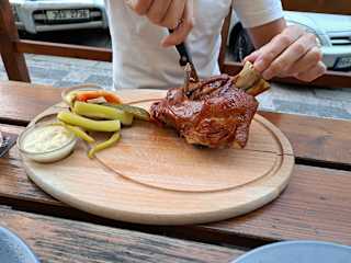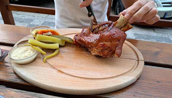 Prima Lokal mit Außen- und Innenbewirtung. Der Kellner ist sehr schnell und aufmerksam. Das Essen ist superlecker, reichlich und günstig. Es waren fast nur Tschechen da. Wir hatten Haxe, Schnitzel und Tenderloin Steak. Das Fleisch war bei jedem Gericht sehr zart und saftig. Obwohl wir hier deutlich mehr Getränke hatten als sonst, war die Rechnung sogar die niedrigste. Eine echte Empfehlung.