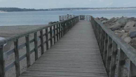 Der kleine Steg am Hafen von Niendorf führt vor zur Ostsee (er geht dabei nicht wirklich über die Ostsee hinweg). Man hat von diesem Steg einen schönen Blick, sowohl über die Lübecker Bucht hinweg, der Küste entlang und auch zur Seeschlösschenbrücke am Timmendorfer Strand.