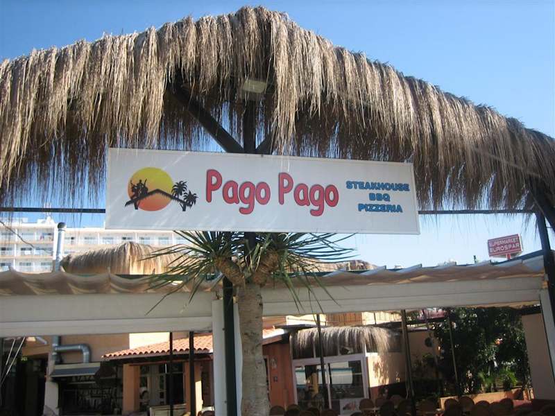 Mittags bzw. nachmittags kann man im "Pago-Pago" preiswert Snacks (span. Omelett, Spaghetti usw.) konsumieren. Am Abend gibt es fast immer Live-Musik und Cocktails.