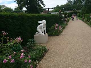 Dies ist das alte Herrenhaus in der Anlage des Automuseums. Teile sind bewohnt, dürfen nicht besichtigt werden, aber zu anderen Teilen hat man Zugang. Im Eingangsbereich läuft 1 Küchenmamsell in Kleidung von früher. In der Küche gibt es 1 Menütafel mit dem heutigen Datum aber 1888. Die Küche ist mit alten Utensilien ausgestattet. Der grosse Saal nebenan zeigt eine gedeckte Tafel für viele Personen vor dem Kamin. Nebenan ist das Musikzimmer mit Klavier. Alles sehenswert und detaillgetreu. Vor dem Haus begient der gepflegte Park mit Rosensträuchern und Skulpturen.