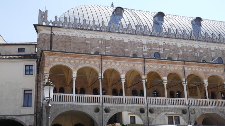 D ieses einmalige riesige Gebäude in Padua ist ein Justizpalast in welchem man heute Veranstaltungen der Stadt geniessen kann. Es liegt zwischen zwei Plätzen, der Piazza della Frutta und der Piazza delle Erbe. Erbaut in den Jahren 1172 bis 1218, im Hochmittelalter und der Frührenaissance. Im Jahr 1726 wurde das Dach durch einen Tornado zerstört, deshalb gabt es eine Rekonstruktion. Man nennt das Gebäude ital. auch Salone. Es ist 82 m. lang und 27 m. breit. Im Untergeschoss gibt es so viele Geschäfte für ausgefallene Delikatessen, so nennen viele das Markthalle.