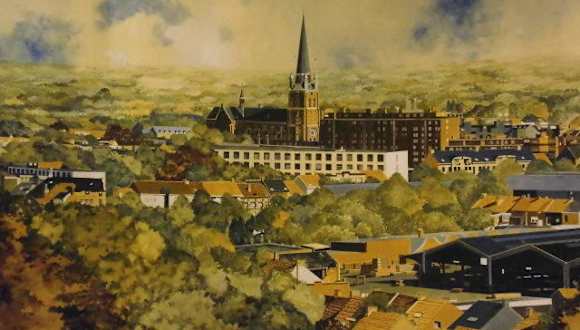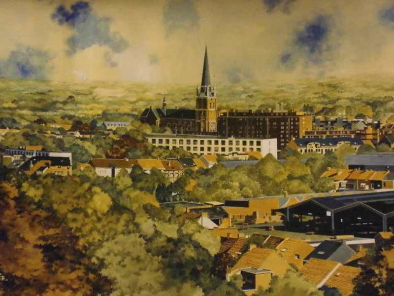 Panoramen gibt es in Dresden, Innsbruck, Den Haag, Berlin und sicherlich auch noch anderswo. Wir finden es interessant sich in einem Rundumbild eine geschichtliche, oder architektonische Situation einer Stadt oder eines Ereignisses anzusehen. Und nun entdeckten wir das Panorama De Vries in Turnhout. Es befindet sich im Rathaus in Turnhout, ist zu den Öffnungszeiten (Di-Fr 9-12h30 und 13-16h30) frei zugänglich. Es ist ein 3/4 Panorama - man betritt den Raum und hat eine bemalte Leinwand von 30 m Länge und 2 m10 Höhe vor sich. Das Panorama stellt eine Vogelperspektive von Turnhout dar. Gemalt haben es Lau de Vries und Lieve Flour. Neben dem Panorama von Waterloo ist es eines der wenigen Panoramen in Belgien. Es ist zwar nicht so spannend wie ein historisches Panorama einer Schlacht wie in Innsbruck oder Waterloo, aber sehenswert auf jeden Fall. Unser Tipp: Kombinieren Sie die Besichtigung von der Kirche St. Peter und dem Besuch des Panoramas De Vries im Rathaus gegenüber – und suchen Sie dann den Turm von St. Peter im Rundbild.