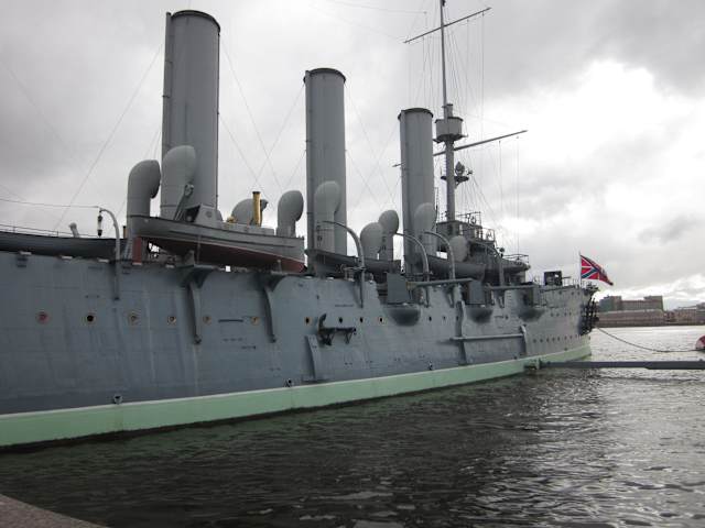 Der Panzerkreuzer Aurora war während der Russischen Oktoberrevolution im Dienste der Zaristischen Marine und gilt heute noch als Symbol dieser bewegten Zeit. Seit seiner Außerdienststellung im Jahre 1956 liegt es vor der Kadettenakademie St. petersburgs vor Anker und wird als Museumsschiff genutzt.