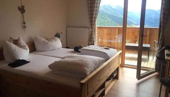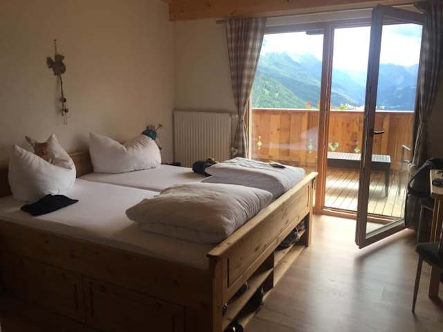 Die Anreise zum Pardtischhof ist schon ein tolles Erlebnis vom Dorf Nauders geht es 2,5km rauf auf 1650m. Der Dreiländerblick vom Balkon am morgen auf das Tal Nauders ist einfach atemberaubend. Wir haben ein Doppelzimmer gebucht, diese wurden im Herbst 2016 neu renoviert und es roch noch richtig toll nach Zirbenholz. Wir möchten auch nochmal ein ganz großen Lob an Elke aussprechen die Wirtin ist wirklich mit Herzblut dabei Ihre Pension zu betreiben. Elke hat auch sehr viele gute Tipps zum Wandern, Mountianbiken und tollen Ausflügen. Es gibt sehr leckere Tiroler Spezialitäten und hausgemachte Schmanker´l, hier kann man die Speisekarte von oben nach unten durchprobieren und alles schmeckt sehr sehr lecker. Wer nach Ruhe und Erholung sucht ist hier genau richtig. Wir werden auf jedenfall wieder kommen.