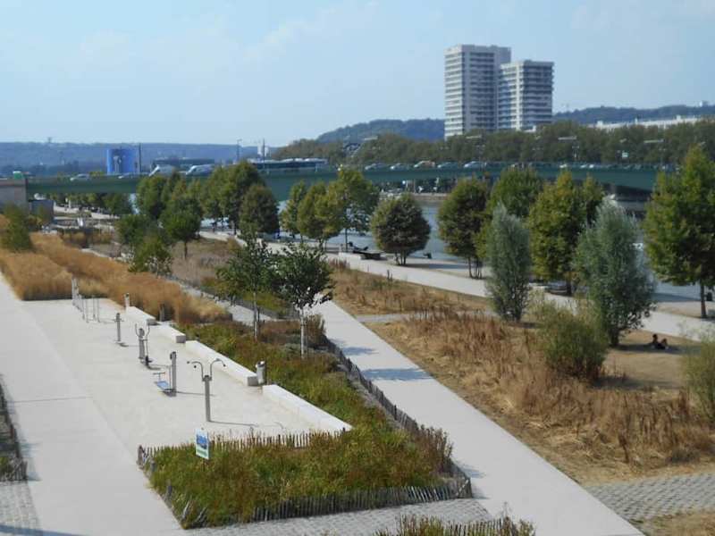 Am Quai Saint Sever, an der südlichen Innenseite der Flussschleife gibt es zwischen den Brücken Pont Pierre Corneille und Pont Boieldieu einen Park mit einigen Freizeiteinrichtungen. Außen gastronomischen Betrieben gibt es für Besucher, die aktiv sein möchten, einen Parkour für Skateboarder und einen Fahrradverleih, und für diejenigen, die nur relaxen möchten, stehen hölzerne Sonnenliegen auf der Wiese.