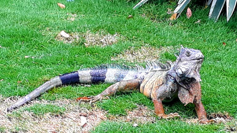 Vor der Kathetrale von Guayaquil gibt es einen kleinen Park, in dem sich viele Leguane verschiedener Größen aufhalten. Sie sind überhaupt nicht scheu, trotzdem sollte man vorsichtig sein, denn ein Biß kann schlimme Folgen haben, denn solche Bisse heilen schlecht. Die Leguane sitzen auch auf den Bäumen, deshalb immer einen Blick nach oben, denn es kommt oft vor das die Tiere urinieren oder koten und das ist dann nicht so toll wenn man so eine Ladung abbekommt.