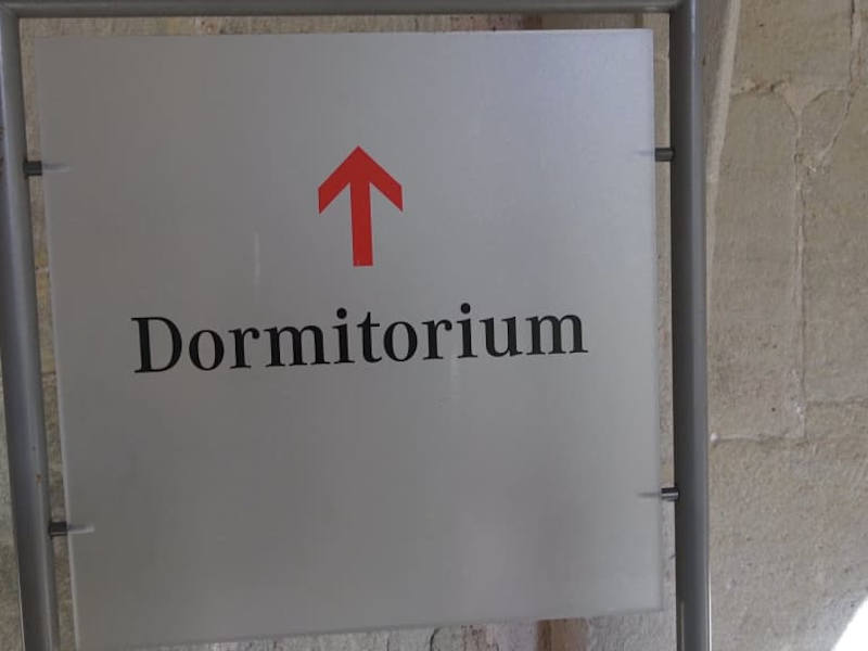In einen Zisterzienserkloster galt grundsätzlich ein Schweigegebot. Es war nur im Parlatorium, dem Sprechsaal, aufgehoben. Hier wurde den Mönchen auch ihre tägliche Arbeit vom Prior zugewiesen. Man durfte sich auch nur kurz darin aufhalten. Das Liber Usuum, das war das Handbuch des Ordens, welches die klösterliche Disziplin festlegte, besagte: Wenn sie das, weswegen sie eingetreten sind, erledigt haben, sollten sie sofort wieder hinausgehen. Das Parlatorium befindet sich am Kreuzgang. Vier Stützen mit Kapitellen tragen das Kreuzrippengewölbe. Unter dem Boden des Raumes befindet sich eine vorklosterzeitliche Heizanlage.