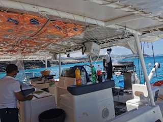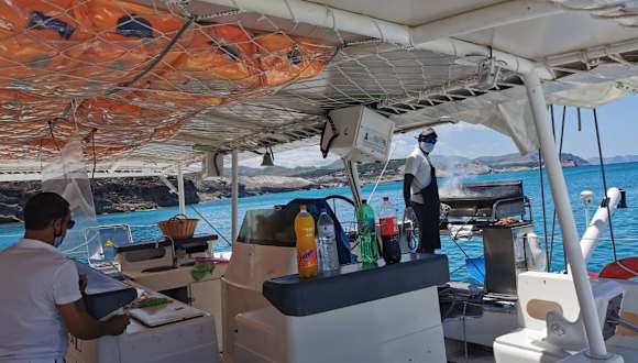 Der Katamaran Trip war große Klasse! Es war eine relativ kleine Gruppe, was wir zu Corona Zeiten ganz gut fanden! Die Leute waren gut drauf und alle nett. Die Tour dauerte 4 Stunden, mit Musik, Getränken und grillen. Auf dem Rückweg nahm der Katamaran richtig Fahrt auf. Während die Mannschaft grillte konnten wir das wunderschöne klare Meer genießen, baden, vom Katamaran ins Wasser springen, auf einer Riesen Matte liegen oder einfach nur chillen. Der Trip ist für Personen ab 18. Wenn wir in 3 Wochen wieder da sind werde ich eine andere Tour mit meinem Sohn machen. Das sagt alles, oder! Miri und ihr Freund sind super lieb, erklären alles, antworten sofort auf Fragen und strahlen eine tolle Lebensfreude aus! Ich freue mich schon riesig auf den nächsten Trip!