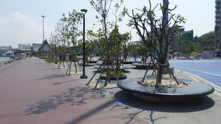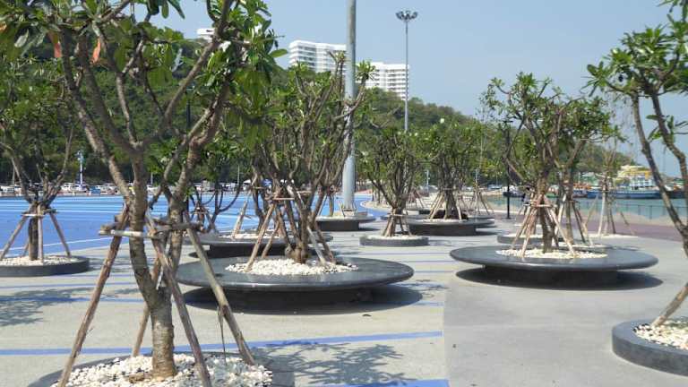 Auf dem weitläufigen Gelände des Bali Hai Pier (extra Tipp) unterhalb des weltbekannten „Pattaya" Schriftzuges entstand der „Pattaya Garten und Bootshafen". Das Areal war sonst von hunderten Speedbooten belegt und wurde Ende 2016 von der Militärregierung des Platzes auf Dauer verwiesen. Der gesamte Belag des ehemaligen Parkplatzes wurde mit verschiedener blauer Farbe in Wellenmusterform und Kompass dekoriert, um das maritime Flair Pattayas zu unterstreichen. Die Anlage soll auch die Liebe des verstorbenen Königs Bhumibol Adulyadej (am 13.10.2016) zum Wassersport würdigen, denn Seine Majestät, Rama IX war begeisterter Segelsportler. Eine weitere Attraktion im „Garten“ sind die tanzenden Fontänen in 35 unterschiedlichen Farbschattierungen. Das farbenfrohe Spektakel kann täglich von 07:30 bis 09:30 und von 16:00 bis 22:00 Uhr verfolgt werden. An der Meeresseite wurden Sitzmöglichkeiten geschaffen und Sicherheitsgeländer am Ufer installiert. Rund um den „Garten“ wurde ein Fahrradpacours angelegt. Der „Pattaya Garten und Bootshafen“ wurde im Rahmen der „Internationalen Fleet Review“ (13. - 22.11.2017) eröffnet. Mit diesem „Garten und Bootshafen“ wurde das Gelände rund um das Bali Hai Pier weiter aufgewertet.
