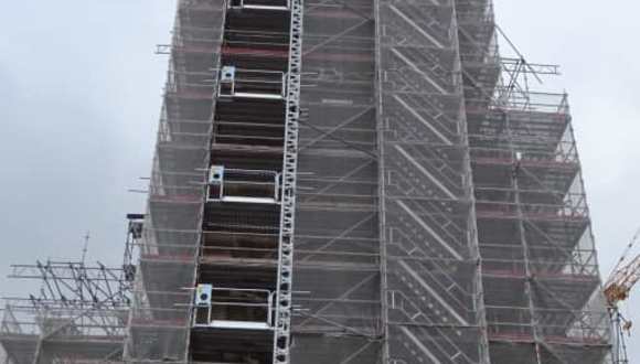 Momentan eingerüstete Kirche
