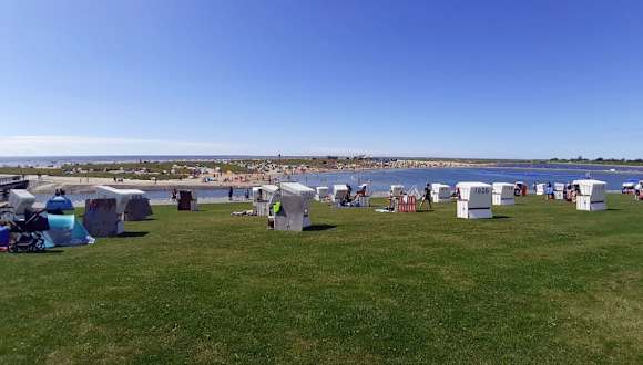 Die neugestaltete „Familienlagune Perlebucht“ biete Sandstrand, Wassersport und in 2 Becken mit 100000 qm ohne keine Gezeiten. Die Becken sind durch eine Brücke getrennt. Ein Becken ist Baden vorbehalten mit einem Badefloss und Kinderstrand. Das andere Becken ist für die Wassersportler gedacht, hier kann man Surfen und Kitesurfen. Dort gibt es auch eine Surfschule. Was ich besonders schön finde es ist ein Teil der Insel der Natur nachempfunden worden.