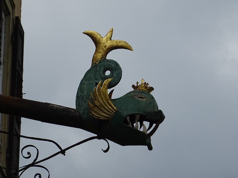 Im Klosterhof findet man das evangelische Pfarramt. Das Gebäude wurde im 18. Jahrhundert errichtet. Die Fenster - 21 Stück an der Zahl - sollen wohl eine Andeutung auf die Offenbarung Johannes Vers 21 sein und auf den Wiederaufbau der Stadt anspielen. Interessant sind die aufwändig gestalteten Wasserspeier am Zwerchgiebel. Diese sollen wohl Delphine darstellen.
