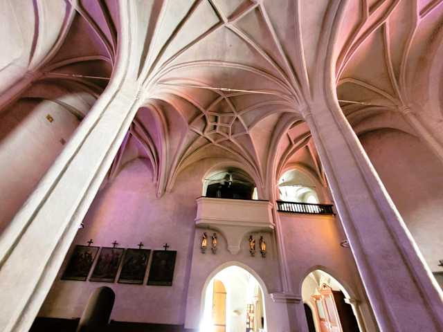 Diese römisch-katholische Kirche ist eine spätgotische dreischiffige Pfeilerbasilika mit einem Kreuzrippengewölbe und geweiht dem Erzengel Michael. Beim Einfall der Türken im 15. Jhdt. verbrannte die Kirche und gegen Ende des 15. Jhdt. wurde sie wieder aufgebaut. Die wunderschönen Glasfenster stammen von Valentin Oman und geben dem Innenraum der Kirche zu jeder Tageszeit ein besonderes Licht. Für mich der WOW effekt war die Lichtbrechung, eine ganz eigene Stimmung .....