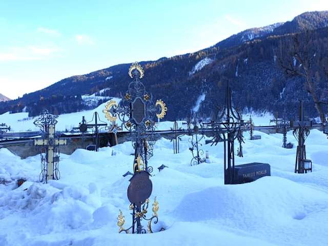 Bevor man die Kirche von innen besichtigen kann, muß man einen kurzen Anstieg in Kauf nehmen - aber dieser lohnt sich. Oben angekommen ha tman einen tollen Blick auf den Friedhof, die Stadt Silian und das Hochpustertal - insgesamt bekommt man tolle Fotomotive. Diese Kirche wurde erstmals im 13. Jahrhundert urkundlich erwähnt und steht unter Denkmalschutz. Der Innenbereich dieser Kirche ist einfach nur schön mit den Altären, den Deckenmalereien - ein Platz zum Gedenken !!!