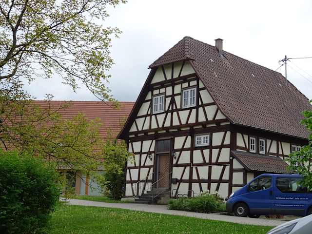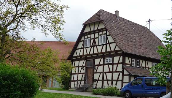 In der ehemaligen Pfarrscheuer wurden Naturalien für den Prälatenhaushalt untergebracht. Die Fläche drum herum diente als Kräutergarten und zur Haltung der Tiere. Schön saniertes Fachwerkgebäude.