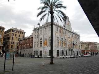 Die Piazza Banchi ist ein kleiner Platz, auf dem sich früher der Getreidemarkt befand. Die zahlreichen Geldwechsler, die hier unter den Laubengängen ihre Stände hatten, gaben dem Platz seinen Namen. Die Handels- und Devisenbörse hatte hier ab 1855 ihren Hauptsitz, und ganz in der Nähe befindet sich der Palazzo San Giorgio, wo sich schon im 15. Jahrhundert die Bank des Heiligen Georg befand, die als erste moderne öffentliche Bank der Welt gilt.
