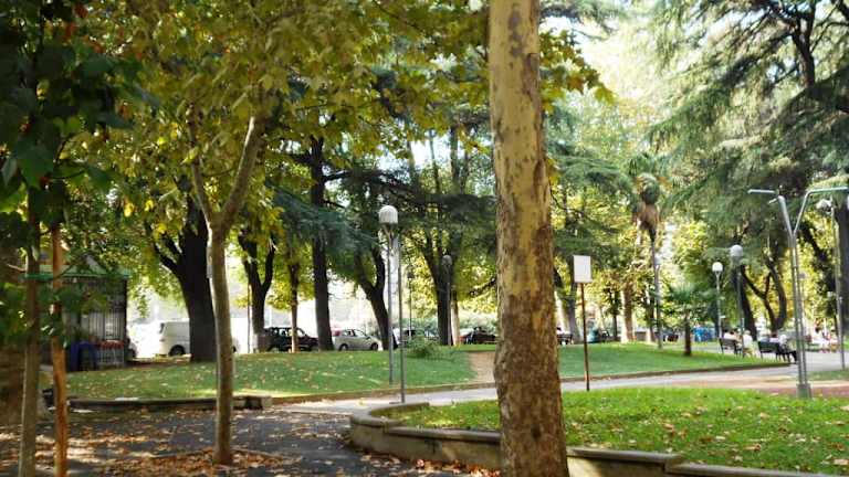 Der größte Platz der Stadt liegt am östlichen Rand der Altstadt und grenzt an den Letimbro, der in Savona ins Ligurische Meer mündet. Der Platz hat einen alten Baumbestand, im Sommer gibt es Gelegenheit für ein Verweilen auf einer schattigen Bank. Ganz in der Nähe, zwischen dem südlichen Rand des Platzes und dem Fluss steht ein futuristischer Palast - das ist das neue Gerichtsgebäude.