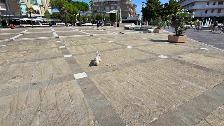 Der Platz liegt schön zentral und bietet viel Abwechslung. Die Wasserspiele laden zum verweilen ein. Es gibt Restaurants und Shops. Auf dem Platz sind viele junge Menschen unterwegs. Auf dem Platz gibt es auch einen Geocache.