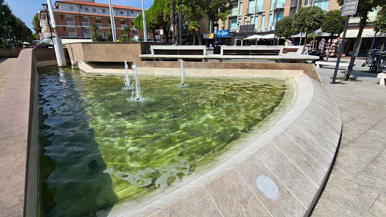 Die Piazza Fontana mit einem Wahrzeichen von Bibi ist wieder voll im Gange, jedoch nicht mehr in der Stärke wie es früher mal der Fall war, auch die LED-Beleuchtung war nur Einfarbig eingeschaltet worden, ich hoffe das ändert sich mal wieder. Immer tolle Abkühlung vor Ort. . Adresse: 30028 Bibione