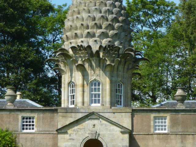 In der Nähe von Falkirk, ca. 30 km nordwestlich von Edinburgh liegt etwas versteckt bei der Ortschaft Dunmore das Anwesen Pinneapple House und Garten. Zu besichtigen gibt es einen 15 m hohen Turm, der einer Ananas nachempfunden ist. Der Eintritt ist frei.