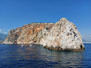 Unbedingt sollte man sich einen Tag vom Strand loseisen und eine Schifffahrt entlang der Küste Richtung Alanya machen. Auf hoher See wird geschwommen, einiges über Land und Leute erzählt und die Stimmung an Bord war durch ein junges Team sehr gut. In Alanya lohnt in jedem Fall die Fahrt mit dem Taxi zur Burg (Taxi da nur 2 Std. Aufenthalt), von wo aus man einen fantastischen Blick über Meer und Küste hat. Auf der Rückfahrt geht's an ein paar Höhlen vorbei. Super Ausflug! Lagebeschreibung: wir haben bei Toni gebucht am Strand vom Hotel Özkaymak - empfehlenswert! Hinweis/Insider-Tipp: Fahrt am Strand buchen - besser als beim Reiseveranstalter und günstiger