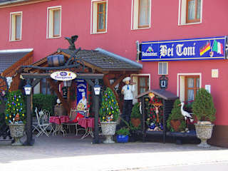 Pizzeria Toni wird in Vorra sehr groß geschrieben, das sieht man schon an der ganzen Werbung, hier sagt man zwar, wer Werbung benötigt kann es nicht gut sein, jedoch überzeugte mich das Restaurant voll und ganz. Auf meiner Suche nach Osterbrunnen in Franken bin ich aus Zufall auf dieses Restaurant gestoßen und da es an der Zeit war, kehrte ich dort ein. Es gibt auch dort den fränkischen Früh- bzw. Dämmershoppen, nicht nur Italienische Kostbarkeiten auch die deutsche Küche oder auch mexikanische Steaks sowie Fischgerichte ergänzen dort die Küche komplett. Super Biergarten und auch hier wurden die Kinder nicht vergessen mit einem tollen Spielplatz, freundlicher Service und die Speisen einfach von feinsten, jederzeit gerne wieder. Adresse Pizzeria Toni Fam. Antonia und Toni Landolfi Hauptstr. 26 91247 Vorra Tel. 09152-8334 Öffnungszeiten: tgl. 11.00 - 14.00 Uhr und 16.30 - 01.00 Uhr, Ruhetag: Montag