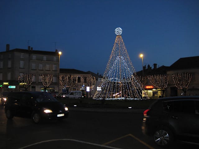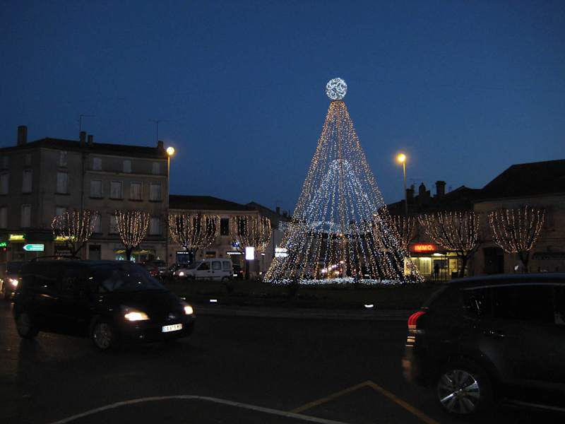 Den Place de Verdun findet man in der Unterstadt. Kommt man über die N21 aus Richtung Agen, so gelangt man automatisch auf den Platz, bevor man über den Pont de la Treille und weiter auf der N21 (später auf der D929) Richtung Pyrenäen fährt. Tagsüber und zu Stoßzeiten – insbesondere zu Wochenmarktzeiten – herrscht auf dem Platz großes Gedränge… womit ich allerdings nicht die Fußgänger sondern die PKW meine, die aus allen Richtungen kommend sich hier stauen. Weiterhin liegt direkt daneben die Avenue d’Alsace mit ihren Geschäften, Banken, usw. und nicht jeder findet dort sofort einen Parkplatz. Zur Weihnachtszeit und dann insbesondere nach Einbruch der Dunkelheit präsentiert sich der Platz sehr hübsch dekoriert, festlich, einfach schön. Da macht es schon Spaß, vor einem der Cafés auf der Terrasse zu sitzen und den Blick auf den festlich geschmückten Platz zu genießen.