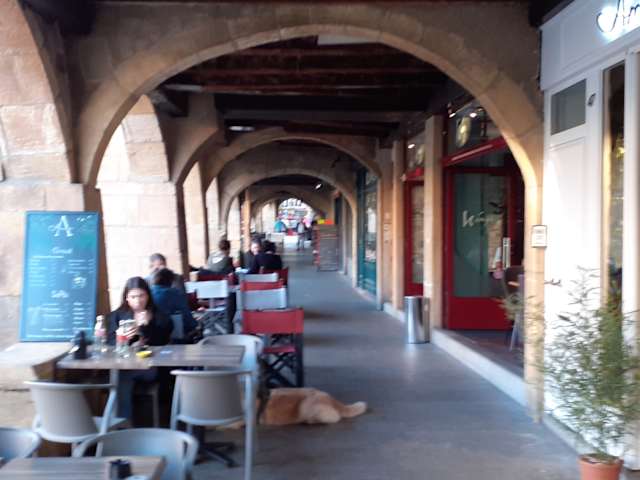 Flanieren Sie die Arkaden entlang. Sehen sie sich die Häuser an und überlegen welche Könige schon hier entlanggegangen sind. Den Blick zum gegenüberliegenden Hochhaus meiden.