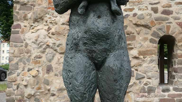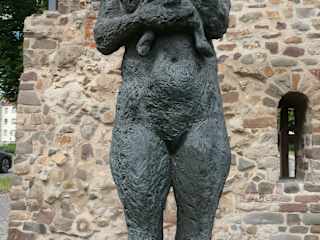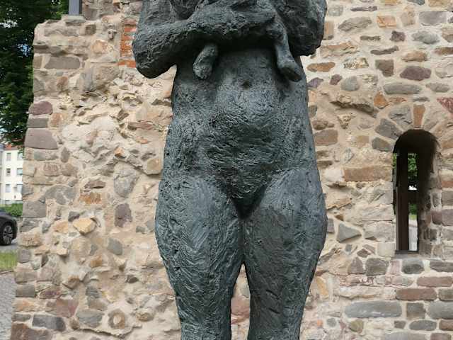 Im Skulpturenpark von Magdeburg befindet sich u.a. die Plastik Mutter und Kind von Sabine Grzimek. Sie zeigt eine stehende Mutter, die ihr Kleinkind mit beiden Händen sicher an sich drückt. Mir hat diese Darstellung von der Mutter mit ihrem Kind recht gut gefallen.