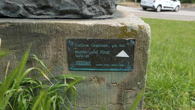 Die Plastik Mutter und Kind 1976 / 81 von Sabine Grzimek befindet sich in Magdeburg in der Grünanlage zwischen dem Kunstmuseum Kloster Unser Lieben Frauen und der Großen Klosterstraße. Die unbekleidet Mutter hält ihr Kind mit beiden Händen schützend an die Brust gedrückt. Es ist eine recht schöne Plastik, die man sich einmal anschauen sollte, wenn man hier beim Kunstmuseum Kloster Unser Lieben Frauen ist. HINWEIS: Diese Plastik Mutter und Kind 1976 / 81 von Sabine Grzimek, die sich zwischen dem Kunstmuseum Kloster Unser Lieben Frauen und der Großen Klosterstraße befindet, NICHT VERWECHSELN MIT: - der Plastik Mutter mit Kind 1974 von Theo Balden in der Kreuzgangstraße - der Plastik Mutter mit Kind 1982 von Heinrich Apel, die sich vor dem Hauptportal der Johanniskirche befindet.