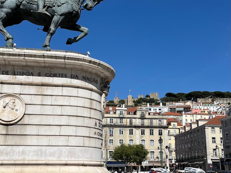 Der quadratische "Praça da Figueira", einer der drei wichtigsten Plätze in der Baixa Pombalina, ist nur durch eine Häuserreihe vom Rossio-Platz getrennt. Der Platz wurde im 18. Jahrhundert auf dem Gelände, auf dem sich vorher das bei dem großen Erdbeben von 1755 zerstörte Hospital Real de Todos os Santos befunden hatte, angelegt. Er diente als zentraler Marktplatz der Stadt, an dem von den Bauern frisches Obst und Gemüse angeboten wurde. Im Jahr 1885 wurde sogar eine große Markthalle errichtet, die bis 1949 genutzt und in den 50er Jahren abgerissen wurde. Der jetzt mit Marmor gepflasterte Platz ist von vierstöckigen Gebäuden im klassischen Stil umgeben, die Hotels, Geschäfte, Cafés und Restaurants beherbergen. In der südwestlichen Ecke befindet sich eine 1971 vom Bildhauer Leopoldo de Almeida geschaffene bronzene Reiterstatue des Königs João I., der nach der Revolution im Jahre 1385 an die Macht gekommen war.