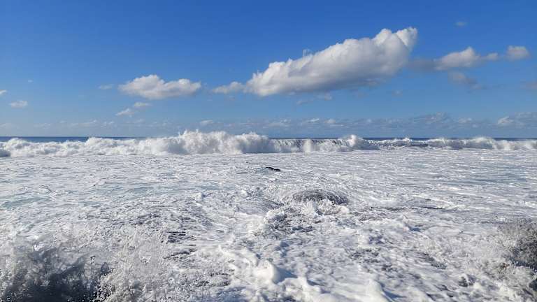 Mittelmäßiger Strand mit sehr hohen Wellen