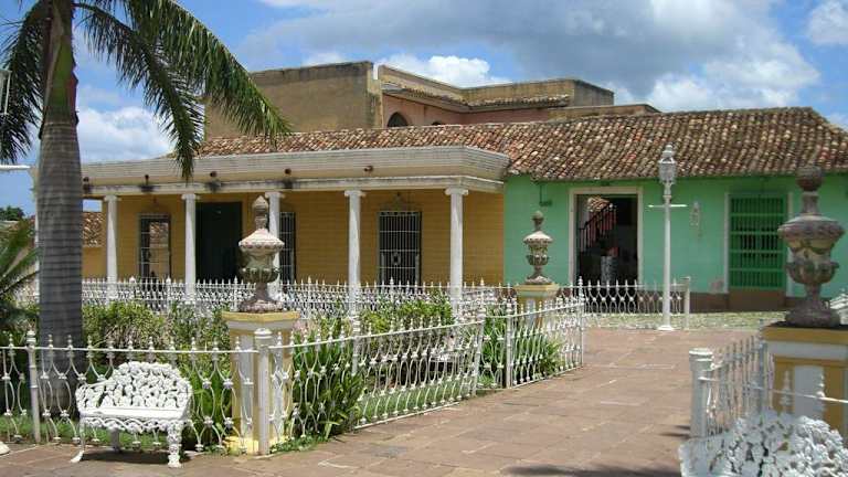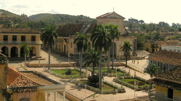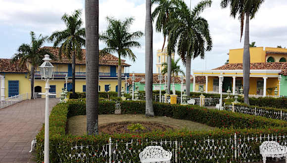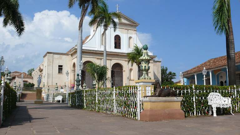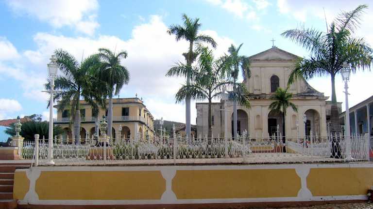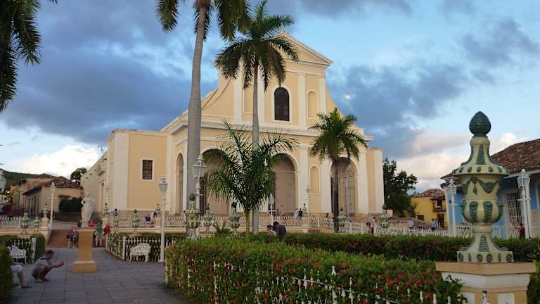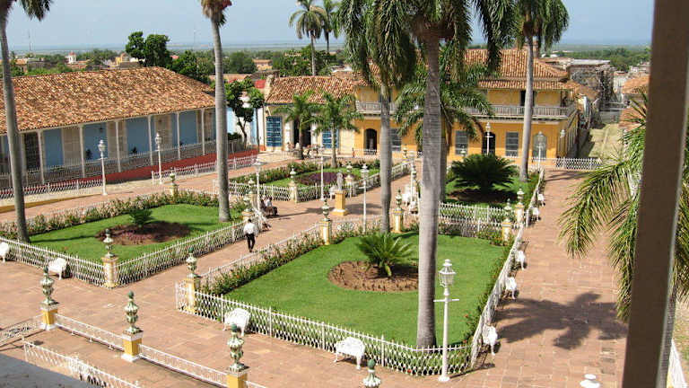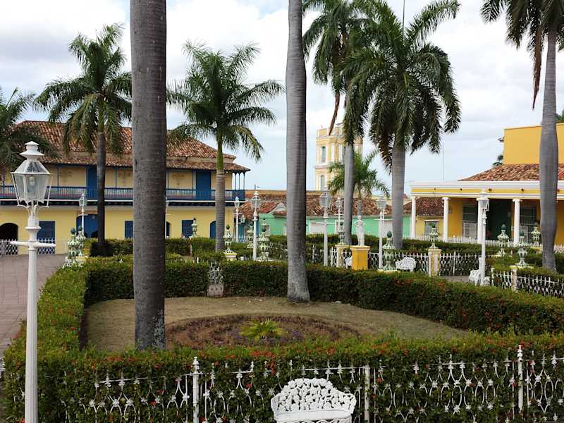 Die als kleiner Park mit kolonialzeitlichen Laternen, kleinen gusseisernen Bänken und dekorativen Blumenschalen angelegte "Plaza Mayor" von Trinidad liegt im historischen Zentrum der Stadt. Der am Anfang des 19. Jahrhunderts geschaffene Platz besteht aus vier symmetrischen bepflanzten Rechtecken, in deren Mitte eine Marmorskulptur der Muse Terpsichore steht. Er wird gesäumt von den wichtigsten Sehenswürdigkeiten Trinidads: - Im Osten die "Iglesia Parroquial de la Santísima Trinidad" und das "Museo Romántico" im Palacio Brunet, - Im Süden das Museo de Arquitectura Trinitaria im Casa de Sánchez Iznaga, - Im Westen das "Museo de Arqueología Guamuaya" im Palacio Padrón. Das historische Zentrum von Trinidad, wo sich auch die Plaza Mayor befindet, wurde im Jahr 1988 von der UNESCO zum Weltkulturerbe erklärt.