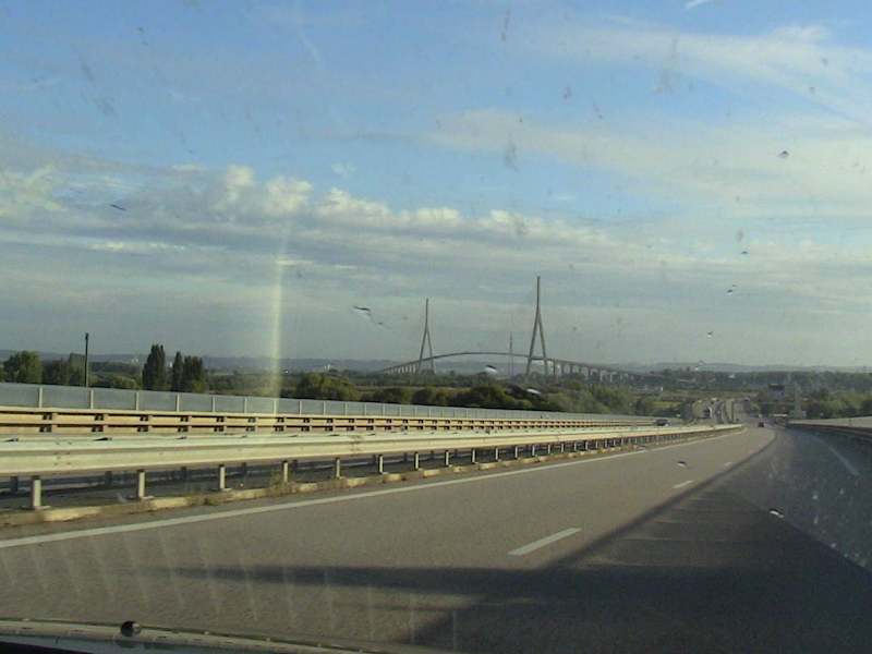 Die Brücke über die Seine-Mündung hat eine Spannweite von 856 Metern und ist damit die längste Schrägseilbrücke in Europa. Die 200 Meter hohen Pylone beeindrucken schon von weitem. Die Fahrbahn befindet sich in luftiger Höhe, bei höchstem bekannten Wasserstand ist man immer noch mehr als 50 Meter über dem Fluss.
