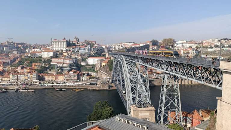 Die Ponte Dom Luís I über den Douro besteht aus zwei Ebenen, die für Fußgänger begehbar sind. Auf der oberen Ebene verkehrt zudem auf zwei Spuren die Straßenbahn. Die untere Ebene kann mit dem Auto befahren werden. Eine Seilbahn bringt Besucher ganz nach oben auf die Brücke. Verfasst von HolidayCheck