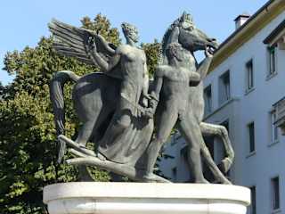 Schöne Brücke mit Reiterstatuen