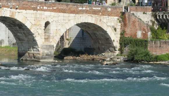 Angeblich soll es bereits 89 vor Christus eine Konstruktion gegeben haben, die beide Ufer der Etsch miteinander verbunden hatte und somit der Beginn der Ponte Petra gewesen sei. Diese uralte schöne Fußgängerbrücke ist eines der Erkennungszeichen Veronas. In der Antike lautete der der lateinische Name der lange vor Christus erbauten Brücke „Pons marmoreus“ (Marmorbrücke). Man könnte glauben, wenn man die fünf Bögen der Brücke betrachtet, dass tatsächlich noch Steine oder Ziegel aus der Entstehung verbaut sein könnten
