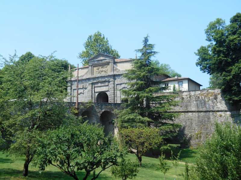 Der venezianische Löwe auf dem Stadttor macht deutlich, wer zur Zeit des Baus über Bergamo herrschte. Der Durchgang durch die Stadtmauer wurde im 16. Jahrhundert errichtet und war der Hauptzugang zur Oberstadt in Bergamo. Benannt ist das Tor nach dem seinerzeit in der Nachbarschaft bestehenden Kloster der Augustiner. Heute ist der Durchgang die Hauptverbindung zwischen der Oberstadt und Unterstadt sowohl zu Fuß als auch mit den öffentlichen und privaten Verkehrsmitteln.