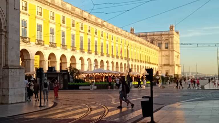 Wenn man mit dem Kreuzfahrtschiff nach Lissabon kommt, fährt man kurz vor dem Hafen bereits am Praça do Comércio vorbei. Aber auch wenn man dann an Land ist, beeindruckt der große Platz, der sich wie eine Veranda zum Tejo hin öffnet und an den übrigen drei Seiten von Gebäuden mit prächtigen Arkadengängen flankiert ist. Und über den Platz hinweg hat man einen schönen Blick auf die Stadt.