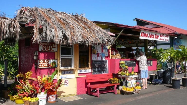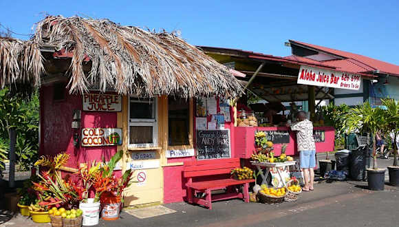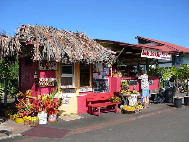 Zwei Tipps für Maui-Rundreisende, die sich selbst verpflegen oder gerne mal ein Picknick machen: das preiswerteste Fried Chicken (und es war gut!) haben wir im „Foodland“-Supermarkt in Princeville im Princeville Center gegessen: 1, 29 $ für einen Schenkel, Brust kostete unwesentlich mehr. Im kleinen „Ching Young Village“-Shopping-Center in Hanalei empfehle ich als krönenden Abschluss (oder zum Mitnehmen für unterwegs) die „Aloha Juice Bar“: dort haben wir den köstlichsten Smoothie auf ganz Hawaii getrunken! Aber es gibt auch Obst und riesige, selbstgebackene Cookies: superlecker!! Und nicht teuer. Und nein, wir bekommen keine Provision *g