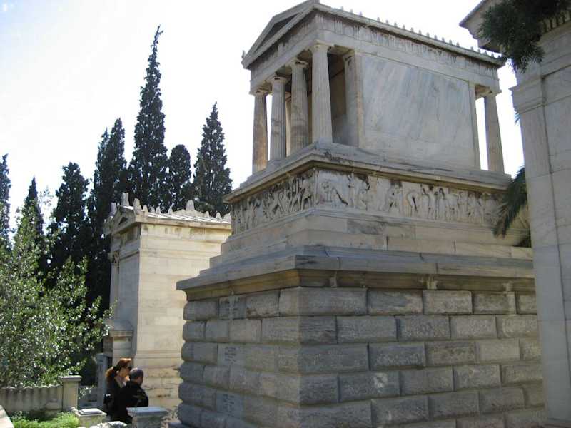 Athen erwartet den Besucher mit einer Vielzahl an Sehenswürdigkeiten und er gehört zweifellos auch dazu- der Proto Nekrotafio, Athens Erster Friedhof. Im Schatten bedeutender antiker Bauwerke findet er meist keine Erwähnung in den Reiseführern und so verirrt sich nur selten ein Tourist an diesen beeindruckenden Ort. Der Friedhof befindet sich südlich des Panathinaikos Stadions und in Laufnähe des Stadtzentrums. Bedeutende Athener Bürger aus Politik, Kultur und Wissenschaft haben hier ihre letzte Ruhestätte gefunden. Gleich links vom Eingangsbereich befindet sich das schlichte Marmorgrab von Andreas Papandreou und das riesige Grabmal der Schauspielerin und ehemaligen Kulturministerin Melina Mercouri- alles überragend vom höher gelegenen, pompösen Tempel des Heinrich Schliemann und seiner Ehefrau Sofia. Auf den Alleen des Friedhofs wandelt man wie durch eine kleine Stadt, zu beiden Seiten säumen Familiengruften, tempelartige Mausoleen und Skulpturen den Weg. Das üppige und schattenspendene Grün der Bäume steht in Kontrast zum schneeweißen und in der Sonne leuchtenden Marmor der Grabmäler. Während die alten Gräber ihren morbiden Charme verbreiten, ist der Schmuck der neueren Begräbnisstätten oft sehr bewegend- Fotos, Briefe, Kerzen und persönliche Dinge des Verstorbenen zieren manche Grabplatte oder Familiengruft. Für uns etwas gewöhnungsbedürftig: Oberhalb der Friedhofskirche blickt man auf ein Gelände mit einer Unmenge chaotisch gestapelter und zum Teil offener! Knochenboxen, in denen die nach drei bis fünf Jahren exhumierten Gebeine der Verstorbenen aufbewahrt werden.