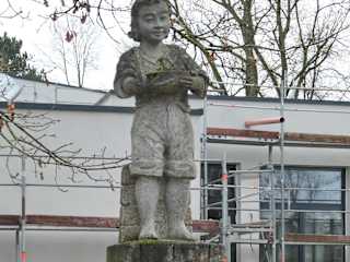Über der 1896 / 1897 in Königshofen entdeckten „Urbani“-Heilquelle wurde 1930 ein Badehaus errichtet, welches 1960 durch eine Trinkkur- und Wandelhalle ersetzt wurde. Seit 1974 darf Königshofen den Titel Bad tragen und nennt sich nun Bad Königshofen im Grabfeld. Da diese Heilquelle 2020 saniert werden musste, wurde auch die Trinkkur- und Wandelhalle abgerissen, welche nun durch einen Neubau ersetzt wird, der nach heutigem Stand im Juli 2024 eröffnet werden soll. Vor der Trinkkur- und Wandelhalle steht ein recht netter Brunnen, auf dem sich die Figur eines Jungen in kurzer Hose befindet. Diesen Brunnen man auch jetzt von der Straße aus gut sehen.