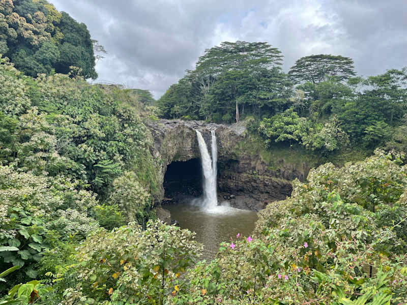 Die Rainbow Falls liegen am Westende der Innenstadt und sind nicht ausgeschildert. Sie fahren vom Ortszentrum Hilo’s die Waianuenue Ave nach Süden, bis Sie rechts in den Rainbow Drive abbiegen können. Der Wasserfall ist ca. 25 m hoch. Morgens bildet sich vor dem Wasser ein Regenbogen. Ein Stück weiter die Waianuenue Ave nach Süden führt ein Schild mit „Boiling Pots“ zu den Pe’epete Falls, die auch schön anzusehen sind.