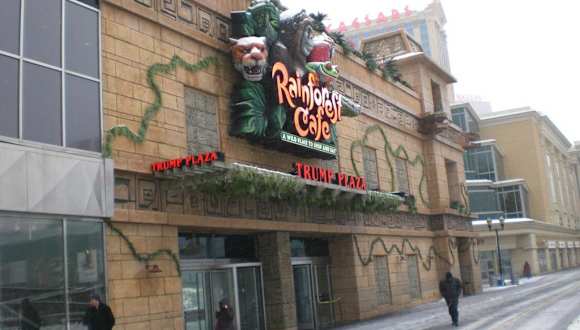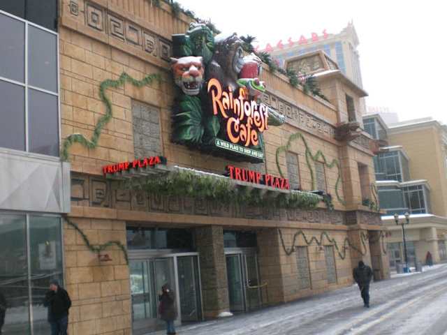Das Rainforest Cafe befindet sich im Trump Plaza Hotel, direkt auf dem Boardwalk. Gegessen wird mitten im Dschungel. Überall sitzen mechanische Tiere wie Affen, Elefanten, Tiger, ... Alle ca. 15 Minuten wird der Dschungel lebendig. Die Tiere und Pflanzen bewegen sich und fangen an zu brüllen. In regelmäßigen Abständen gewittert es. Auf der Speisekarte stehen Salate, Burger, Pizza, Nudeln, Steaks und mexikanische Gerichte. Wir fanden alles bestellte lecker.