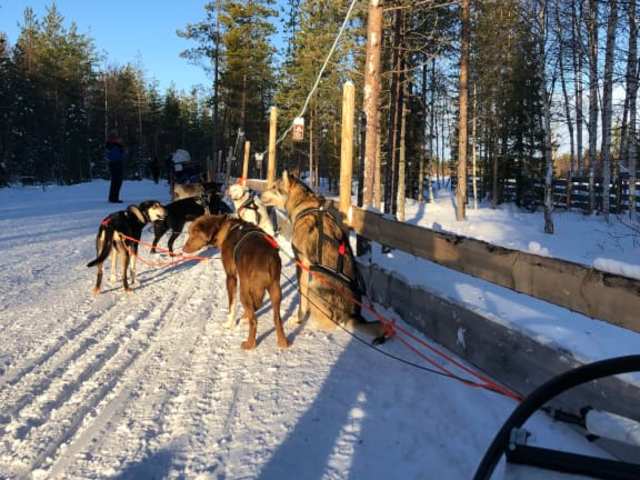 Wir haben Ende Februar diese fantastische Aktivität mitgemacht, es war so schön, something to remember. Wir wurden vom Hotel in Rovaniemi abgeholt und zu einer Husky Farm gebracht. Dort konnten wir erst viele Huskies sehen und fotografieren und dann folgte eine detaillierte Einweisung auf Englisch. 2 Personen sind eine Gruppe und fahren zu zweit, man steuert die Schlitten selber. Vorne fuhr ein Mitarbeiter der Farm und dann hinterher mit grosser Abstand von einander die Schlitten mit den Huskies. Als Letzte fuhr auch eine Mitarbeiterin just in case. Wir fuhren 10 km in einer magischen verschneiten Landschaft, die Huskies bellten laut und wollten immer schneller fahren, man muss aufpassen und vorsichtig umsichtig fahren und bremsen, die Hunde sind sehr dynamisch und lieben Bewegung, es gab eine kurze Pause zum Fahrer Wechsel und Fotos machen . Man muss Kraft haben und seiner Sache sicher sein, sonst übernehmen die Hunde das Kommando, das darf nicht passieren. Als wir fertig waren, konnten wir uns in einem warmen Raum aufwärmen, es gab warmen Beerensaft und Cookies und wir konnten Fragen über die Huskies stellen. So ein wundervoller Tag