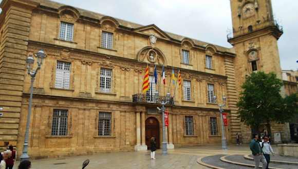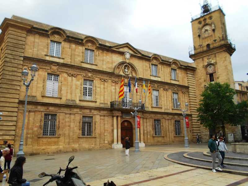 Aix-en-Provence hat ein sehr schönes Rathaus, das sich architektonisch in das historische Gesamtbild der Stadt einfügt. Das Rathaus wurde zwischen 1655 und 1678 erbaut und ist verbunden mit dem älteren Uhrenturm, der gleichzeitig eins der Tore der Stadt war. Die Fassade des Rathauses ist italienisch inspiriert und war ursprünglich reich verziert mit Engelsstatuen und Büsten der Grafen der Provence und von König Ludwigs XIV. Im Zuge der Revolution wurden einige dieser Fassadendekorationen abgebaut.