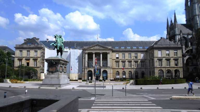 Das Rathaus von Rouen ist in den ehemaligen Schafräumen der Mönche des Klosters Saint-Ouen untergebracht. Nachdem das Kloster während der Französischen Revolution geräumt worden war und die Stadtverwaltung auf verschiedene Gebäude in der Stadt verteilt war, übernahm die Stadt im Jahr 1800 die Räumlichkeiten und richtete hier das Rathaus ein. Die mit dem Gebäude verbundene Abteikirche zeugt noch heute von der ursprünglichen Nutzung des Rathauses.