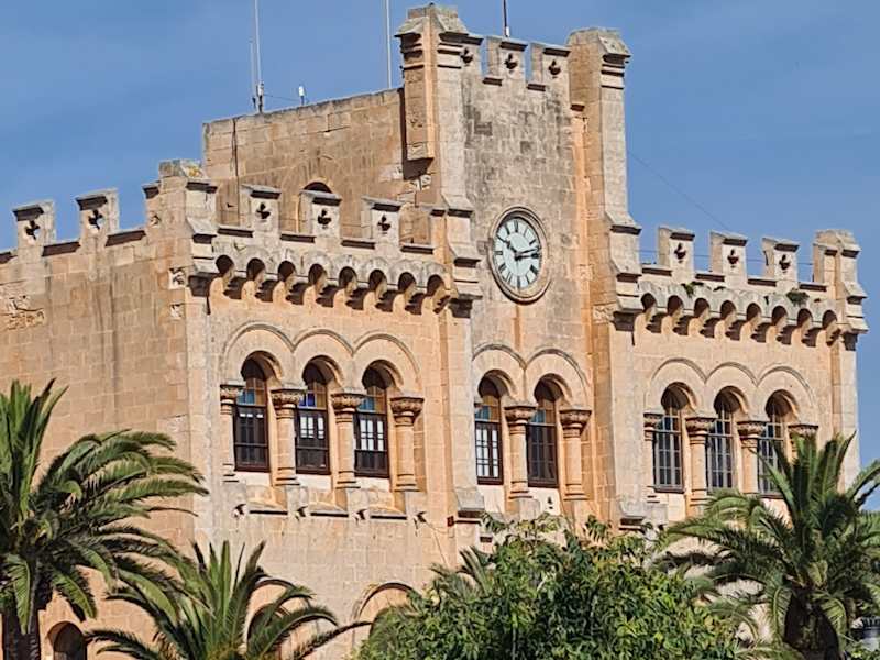 Das Rathaus geht auf den Alcázar, die Burg des maurischen Gouverneurs zurück, der bis zur Eroberung der Insel durch König Alfons III. im Jahr 1287 über Menorca herrschte. Im 19. Jahrhundert erhielt das Gebäude sein heutiges Aussehen, das aber immer noch an eine Festung erinnert. Besonders, wenn man das Rathaus vom gegenüber liegenden Ufer des Hafens betrachtet, wird dieser Eindruck bestätigt.